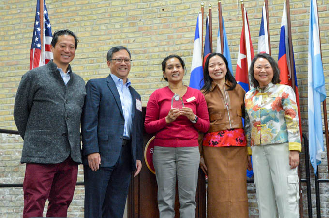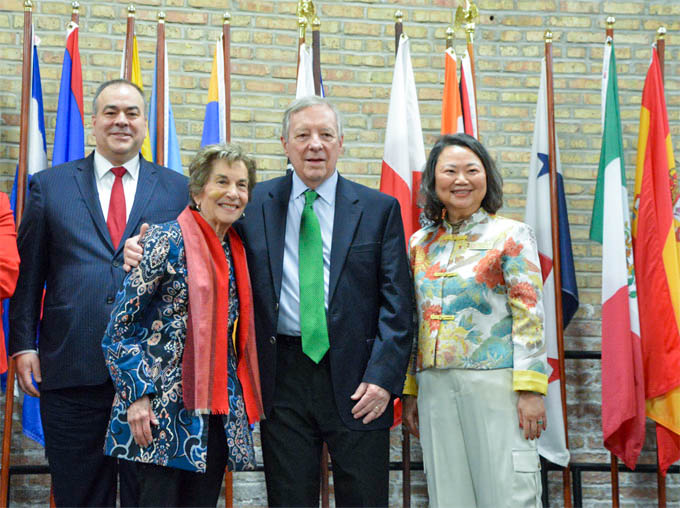 华人互助会向国会参议员Dick Durbin(左二)、国会众议员Jan Schakowsky(右二)颁奖