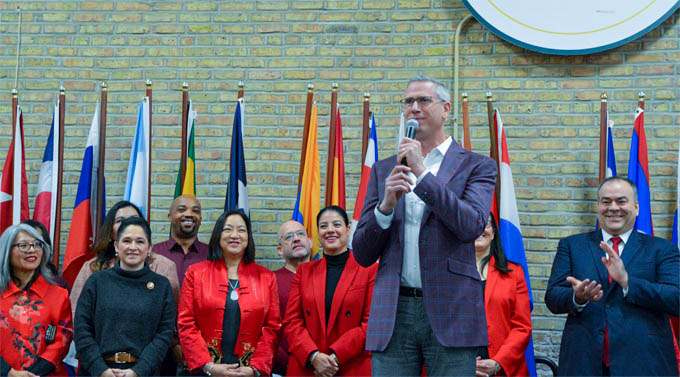 【芝加哥侨学网报道】华人互助会日前在北华埠奥古斯汀学院(St. Augustine College)隆重举行马年新春庆祝活动,互助会全体员工与主流政要,多年来服务移民、难民的合作伙伴,各族裔社区600多名来宾欢聚一堂,庆祝农历新春,彰显大芝加哥地区丰富多彩的多元文化。