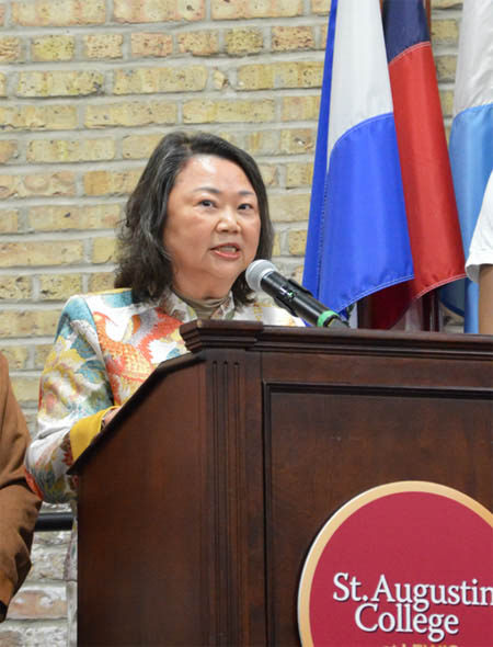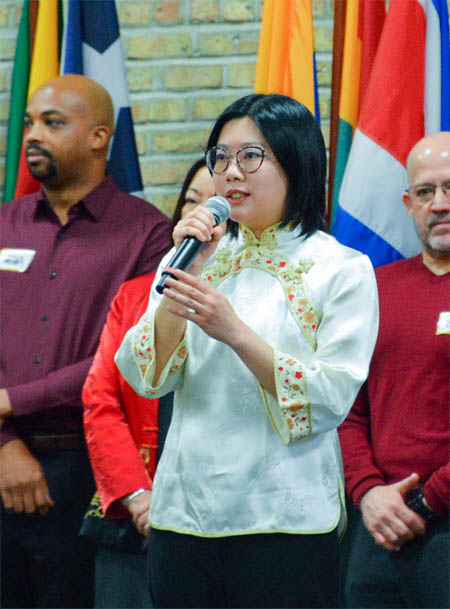 伊州孩童与家庭服务厅亚裔事务主任汤信仪(Ada Tong)致辞