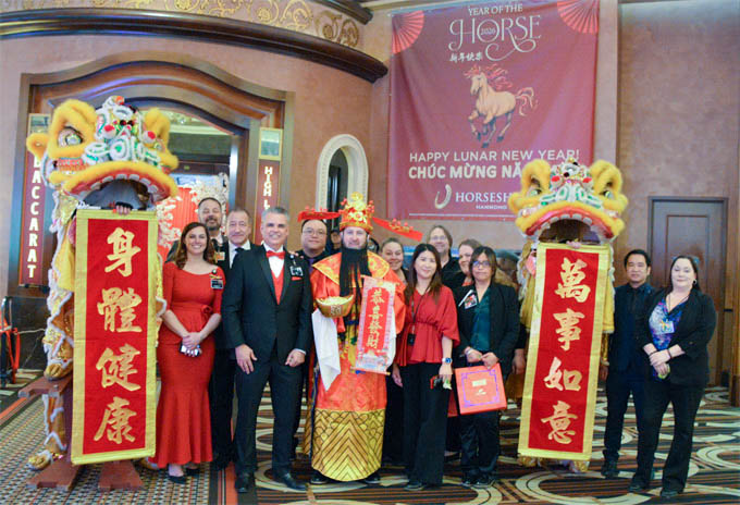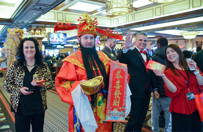 步入金碧辉煌的娱乐博彩大厅,则是瑞狮狂舞、锣鼓喧天,热闹祥和。马蹄铁的各族裔员工们身穿传统服饰与舞狮队一起绕场一周,向客人们分发新年糖果,把中国新年的喜庆与欢乐带给大家。
