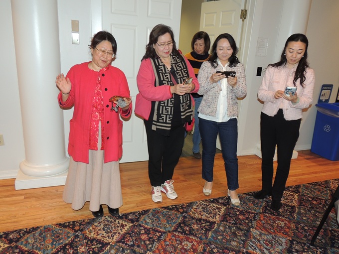 左起,华南理工大学前副教授周颖、资深工程师王炎、北航前副教授王颖、科工专会长李晓静,后排是诺基亚公司科技研发经理朱宁维Grace Chu。