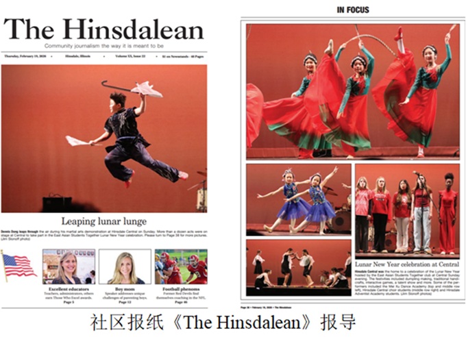 当地知名社区报纸《The Hinsdalean》也以头版头条的规格,对本次活动进行了专题报道。这是继去年之后,“多元文化庆春节”活动第二次登上该报头版。