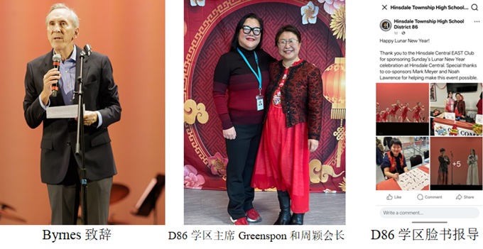 首场高中专场庆祝活动得到了第86学区(D86)的热烈支持。学区董事会主席Ms. Greenspon亲临现场致辞,并表示希望在明年的庆祝活动中赞助文化展台的“美食街”部分。活动结束后,D86学区官方脸书页面对庆祝活动进行了详细介绍。村理事Mr. Byrnes代表村政府致辞。