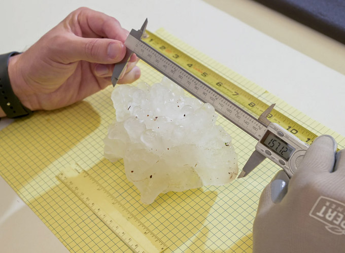北伊州大学教授Victor Gensini展示超级大冰雹:宽7英寸,重1磅多!
