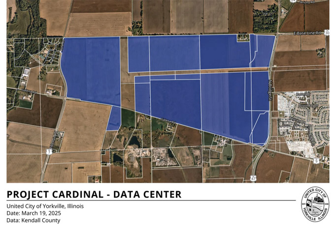 约克威尔市(Yorkville)距芝加哥市中心约1小时车程,是一个人口仅约2.4万人的西郊小镇。除了红雀数据中心工程外,约克威尔市还拟建另外一个数据中心姊妹工程项目“钢铁数据中心”Project Steel Data Center。该中心占地近500英亩。本周三约克威尔市议会也讨论了“钢铁数据中心”项目,但并未就该项目进行投票。