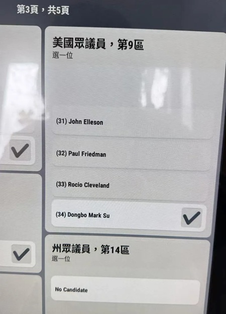 中文版选票:Mark Su在国会议员候选人栏目34号