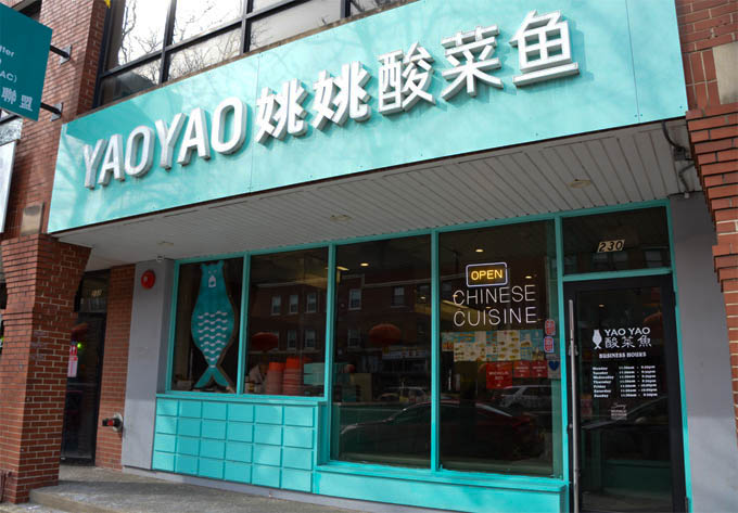 姚姚酸菜鱼位于芝加哥中国城,“天下为公”牌楼斜对面、消防局附近。淡蓝色调,波纹式熊鱼商标,Tiffany轻奢风格,芝加哥中国城的美食小清新,让你眼前为之一亮!