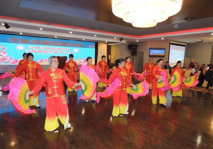 梅氏公所妇女组表演扇舞