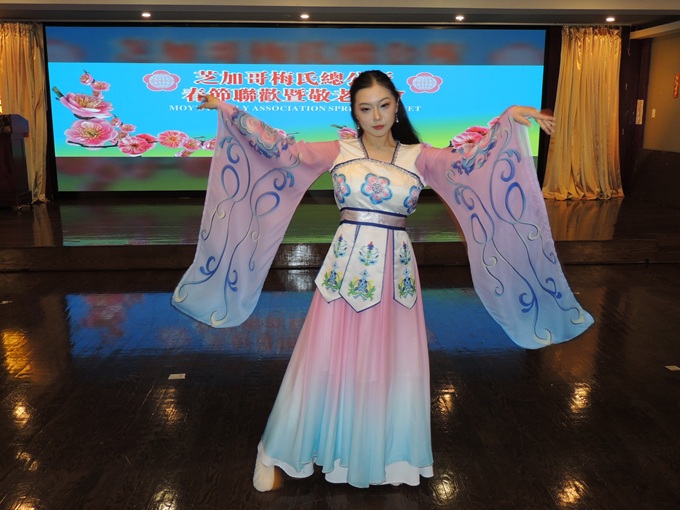 本次梅氏春宴又给年轻的华人新人提供机会。新出炉的华埠小姐选美大赛冠军周凌宇、亚军安洪锐、季军黄佳仪一起表演了舞蹈《跳舞街》,以娴熟的舞技、优雅的舞姿深深打动观众。接下来,周凌宇、安洪锐、黄佳仪还表演了独唱和独舞等精彩节目,个个都是亭亭玉立,一展风姿。