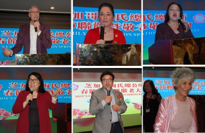 最早来到芝加哥的华人是梅氏宗亲,梅氏总公所是芝加哥最早的华人宗亲会。自1920年以来,芝加哥梅氏总公所便居全美梅氏宗亲总会的领导地位。11区区长李惠华在致辞中讲到,自己在中国城长大,现场的梅氏宗亲,有很多是当年帮助自己成长的伯父、伯母。祝贺梅施美英成为第一位女性的梅氏总公所主席。梅氏总公所有100多年的历史,宗亲会代代相传,年轻人将接过梅氏总公所的接力棒。