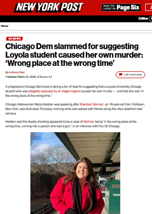 【芝加哥侨学网综合编译】3月19日洛约拉大学18岁女大学生遭枪杀案,芝加哥第49区区长(市议员)玛利亚·海登(Maria Hadden)作出公开评论,说是“他们在错误的地点、错误的时间碰到了一个带枪的人,他们可能是在码头不经意吓到了那个人(凶嫌)”。