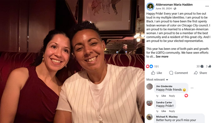 海登区长曾在社交媒体上表示:“我是芝加哥市议会第一个公开承认同性恋身份的非裔女议员,我与一位墨西哥裔美国女性结婚,对此我表示自豪。”