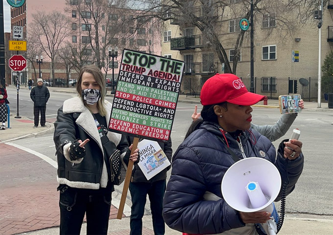 保守派组织Chicago Flip Red在海登区长办公室附近抗议示威