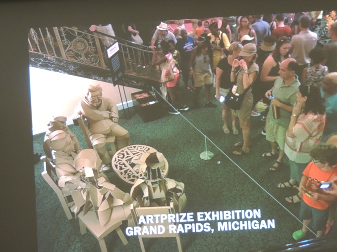 现场放映了著名导演兼制片人Curtis Chin的最新纪录片《Warren King:纸板之王:从工程到艺术:身份的旅程》记录了 King 不寻常的艺术道路。King在麻省理工学院和斯坦福大学深造并担任工程师多年后,2013年一次回到中国祖籍地的旅程激发了他深层的创作灵感。King开始利用等身大小的纸板雕塑重新构建他记忆中的故乡人物,巧妙地将他在威斯康星州的成长背景与中国血统联系在一起。
