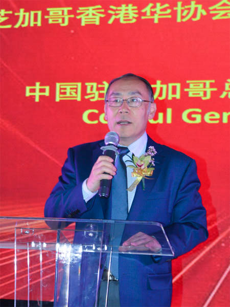 王保东总领事代表中国驻芝加哥总领事馆向麦皓岚会长、香港华协会新届董事的就职表示热烈祝贺。王总领事赞扬香港华协会长期以来爱国爱港,热心社区公益,坚定反对“港独”,为促进中国香港与美国中西部地区的交流合作发挥了重要的桥梁与纽带作用,他期待新届职员们继续坚定支持“一国两制”方针,助力中华民族复兴伟业,为中美友好交流与两国人民的友谊作出更大贡献。