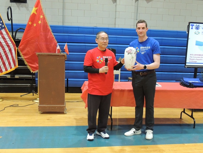 塔夫特高中和中国驻芝加哥总领馆还举办了匹克球友谊赛。有深厚网球基础的王保东总领事,在匹克球上触类旁通,大展身手,以大幅度领先的比分赢得匹克球友谊赛男子单打比赛。中国领馆人员的接地气和多才多艺,给现场观众留下深刻的印象。
