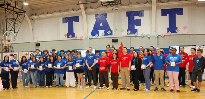 塔夫特高中校长Ryan Glowacz介绍说,塔夫特高中有四千多学生和四百多老师,是伊州第四大的高中。塔夫特高中是芝加哥最多元的公立学校,有100个俱乐部,72个体育队,学生会55种语言。