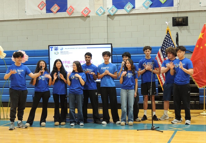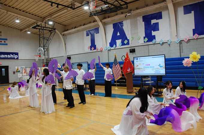 【芝加哥侨学网记者王坚报道】4月18日,在芝加哥北部的威廉.霍华德.塔夫特高中(William Howard Taft High School,中文简称塔夫特高中),为迎接国际中文日,学生们表演了自己创作的中文艺术节目和中国舞蹈,在汇报中文学习成绩的同时,也展示了艺术创新能力。