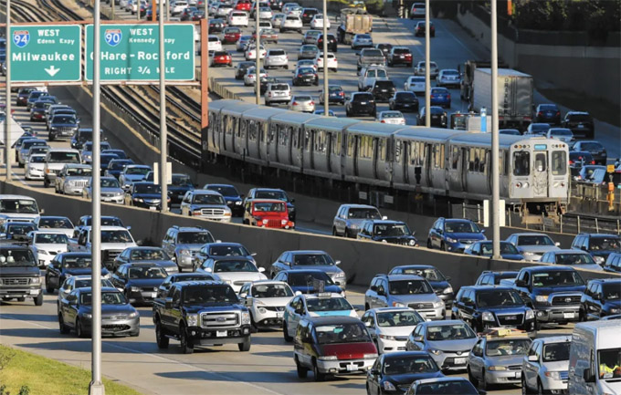 芝加哥是全美铁路、空运领域的交通枢纽城市,重型交通(柴油卡车、火车、飞机),工业设施和发电站的废弃排放是造成PM2.5悬浮微粒污染和臭氧污染的主要来源。90、94、290高速公路的严重塞车路段会让沿线区域的空气污染程度尤其明显。