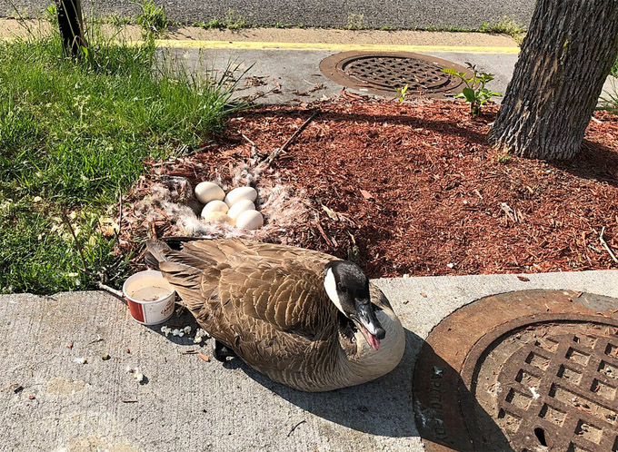【芝加哥侨学网编译】目前正值加拿大鹅繁殖期,在郊外乃至都市环境中都会经常看到一窝鹅蛋。不过捡鹅蛋是违法行为,违者将被面临法律制裁,因为加拿大鹅依旧是保护动物。