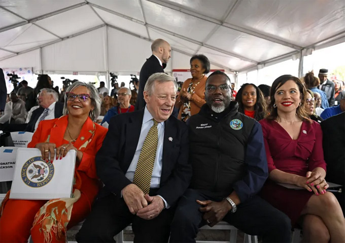 4月24日,联邦参议员杜宾(Dick Durbin),芝加哥市长强森(Brandon Johnson)出席在南郊Roseland举办的开工仪式。强森市长表示,红线地铁扩建是连接南城区居民的重要项目,数十年来被忽视的南城区居民无法享受其它社区的便捷,红线地铁扩建竣工后将带来巨大的改变,提升南部城区的经济发展,这是投资社区,倡导社会公正。