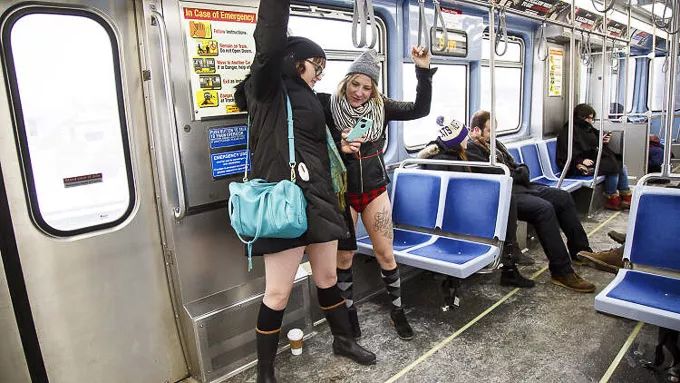 芝加哥人真会玩,夏天裸骑,冬天裸乘。每年一度的芝加哥“不穿裤子地铁日”也将于本月开展。组织者通过脸书页面召集参与者,约好时间地点,大家集体露面,不穿裤子乘坐地铁。