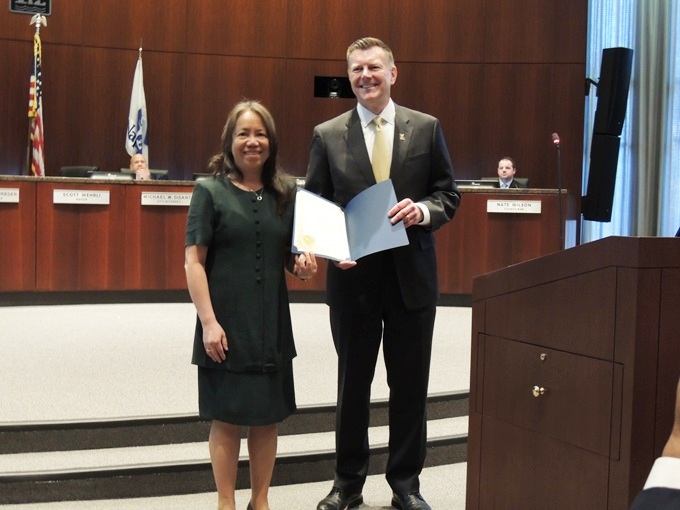 市长Scott Wehrli向市议员梁保罗颁发表彰状