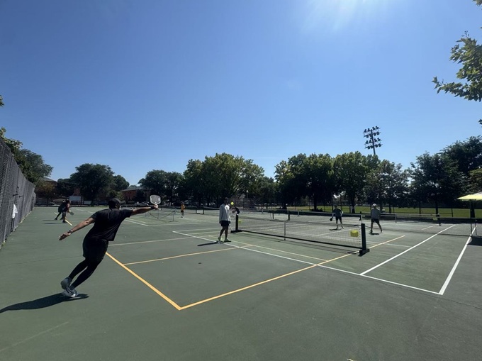 比赛于9月14日在风景秀丽的芝加哥桥港区(Bridgeport)McGuane Park隆重举行。为了鼓励更多初学者参与,赛事特别设立两个不同水平组别:公开组(无水平限制)和康体组(限Pickleball水平3.5及以下)。这一设置充分体现了“全民参与,以球会友, 推广健康生活” 的办赛理念。