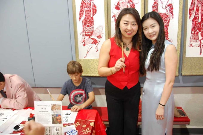 美中文化艺术中心的艺术家张立萍、做了精彩的国画表演,并教学生学生画国画。国画家张立萍从小师从国画大师,国画技艺精湛,其作品在世界各地展览,并被各国收藏家收藏。