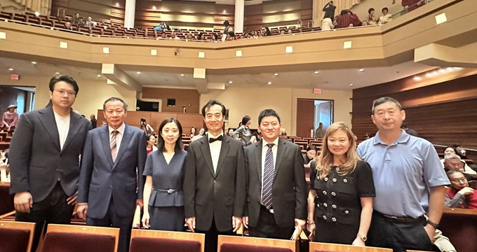 各界来宾合影,右一为美中文化艺术中心主席何达权、右二为湖北同乡会会长王炎