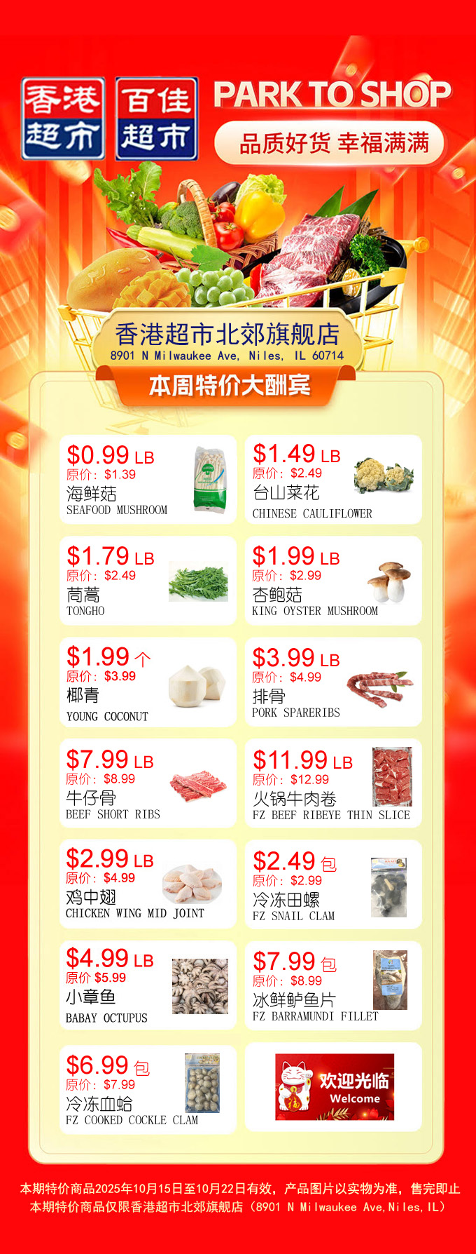 香港超市北郊旗舰店(Park To Shop Niles),位于芝加哥北郊Niles , 近294、94高速,交通方便,总购物面积8.8万平方英尺,600停车位,是美国中西部地区规模最大的华人超市。