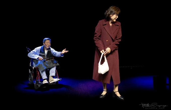 王坚和李莉饰演“暗恋”中的江滨柳与云之凡。战乱中失散多年,重逢时已是两鬓斑白,两位演员在年龄跨度如此之大的表演中,分寸适中,拿捏得当,让岁月和历史的重量在云淡风轻的对白中缓缓流淌。那份平静中的酸楚、克制中的深情,使整个舞台弥漫着淡淡的苍凉。最终的情感爆发震撼人心,观众被深深触动。悠悠饰演的护士天真可爱、善良温柔,自然流畅的表演为沉郁的剧情注入了一缕阳光,让这段悲情的故事多了几分温暖。