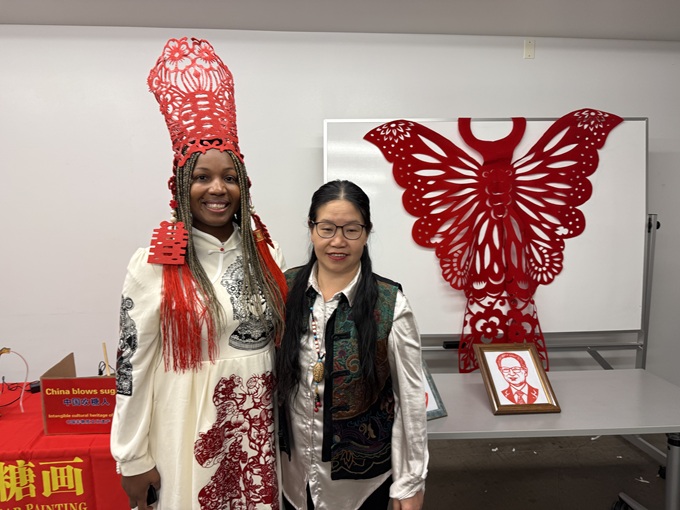 【芝加哥侨学网讯】11月1日,世界非物质文化遗产促进会(W.I.H.P.T.)与美中文化艺术交流协会联合三位来自中国的非遗大师,在芝加哥大学洛根艺术中心(Logan Center for the Arts)Family Saturday 推出公益展演与互动工作坊。活动以“纸与光·非遗×当代艺术”为主题,呈现剪纸与3D剪纸服装(旗袍、汉服)、吹糖人(非烹饪演示)、面塑以及木偶/皮影互动小段等多项传统技艺,吸引众多家庭与学生热情参与。