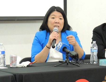 华咨处政府事务总监Lisa Wright,介绍伊州州法限制DHS/ICE在法院、医院、学校和儿童保育中心的执法活动,扩大伊州居民就非法逮捕和拘留提起诉讼的权利。