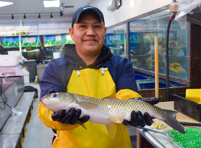 鲩鱼大多都是小个头,肉质鲜嫩,师傅帮您现场宰杀清理