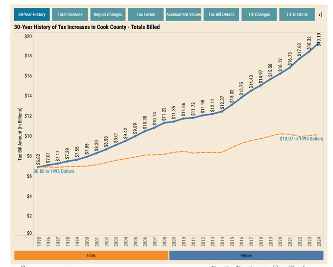 30年来库克郡房产税征税总额统计