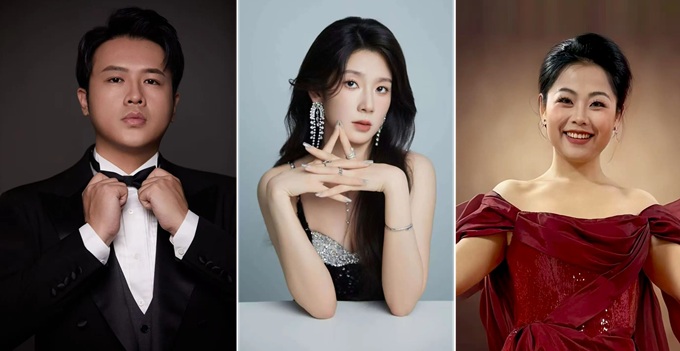 左起,著名男中音歌唱家胡斯豪、著名民族唱法女高音歌唱家阿米娜、冠军歌手周玫