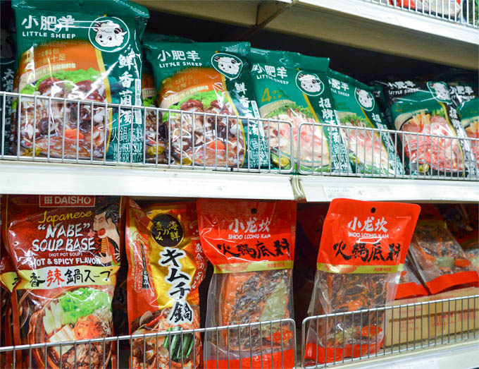 冬季火锅旺季已经到来,88超市火锅底料区琳琅满目,海量供应