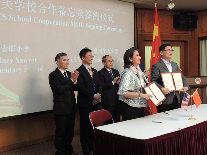 索耶小学Sidney Sawyer Elementary School与福建省泉州第五中学签署谅解备忘录