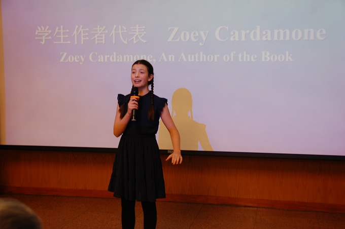学生作者代表Zoey Cardamone,用十分流利的中文,讲述了中国之行对学习中文和中国文化的帮助,很高兴有机会与中国人用中文交流。在学校里学习中文,可以参与很多中国文化活动,让自己感到学习中文很有意义。中文学习还帮助自己扩展国际视野和成为世界公民。