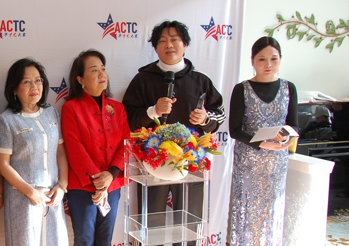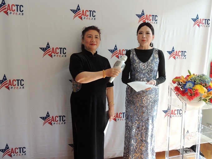左起,国际美华才艺大赛执行导演刘晔、美华文化艺术协会执行会长陈育兰担任主持