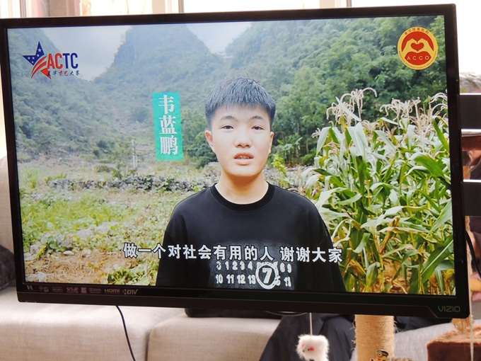 美华文化艺术协会执行会长陈育兰讲陈米范来自广西贫困山区,在自己经过努力取得成功之后,不忘山区贫困儿童,举办慈善晚会筹款支持贫困儿童。