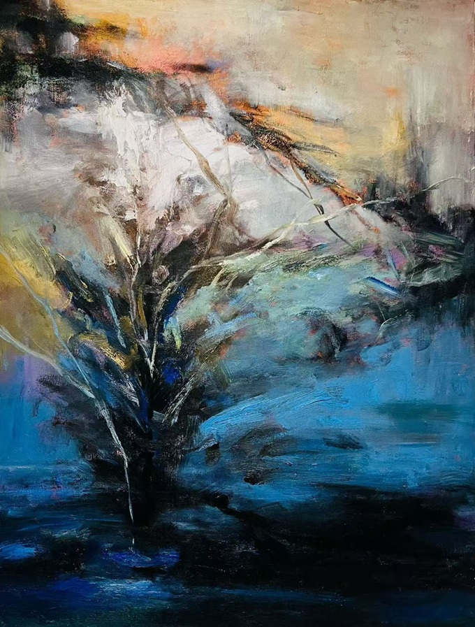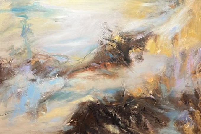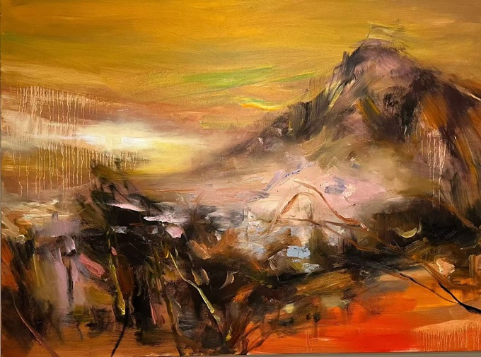 「印象山水」系列是画家醖釀多年的抽象畫新系列,幾十年來画家游歷了世界各地的山山水水,心中累積了無數的山水印象,並一直在尋找一種我自己想表達的新的視角語言,今年在中國一個月的探亲中,自駕遊了中國的大山秀水,突然間領悟到畫家保罗克利倡導的「藝術不是為再現可見事物,而是要變不可見為可見」的精神內核,力求在自己的繪畫藝術中向更高的層次上的重「神似」、講「意境」的中國美學思想靠近。此次新的系列嘗試用一種意向油畫的表現形式畫印象中的風景,力求用画家最喜歡的色彩、光影、空間和線條笔触,在畫布上以寫意的抒情抽象,描繪心中的夢想山水,似與不似之間是画家對山水的情感和隨想,這個最新的系列雖极具挑戰性,但是画家樂此不疲享受創意和繪畫的過程,并将繼續嘗試下去……
