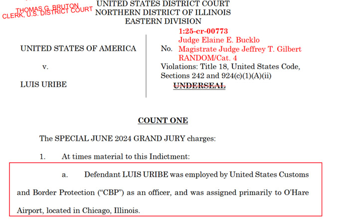 嫌犯为曾在芝加哥O'Hare机场工作的海关与边境保护(CBP)联邦警察