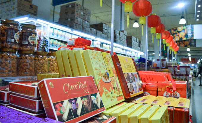 88超市入口处最的节庆畅销礼品展示区,来自中国大陆、香港、台湾的新款礼盒,来自日本、韩国及东南亚地区的畅销零食,蔚然壮观,选择丰富。