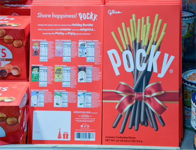 Pocky,热销全球各地的日本零食,近60年的经典,生产商为著名日本食品企业Ezaki Glico。今年该公司推出了超大礼盒装,9种风味荟萃,巧克力、抹茶、草莓、香蕉、奶油等,礼盒内珍藏9种不同风味小盒包装,美味天长地久。这款超大Pocky礼盒,为最近88超市零食礼盒类的销量冠军,倍受欢迎。