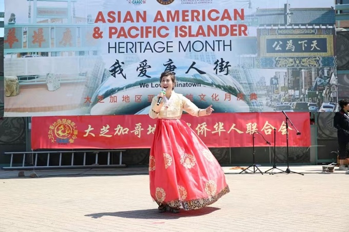 沈小丽在华联会亚裔月活动上演唱