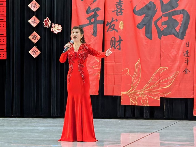 沈小丽在瑞华中文学校春节晚会上演唱