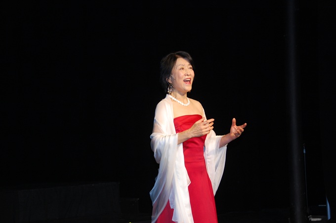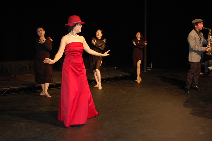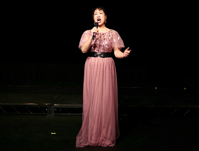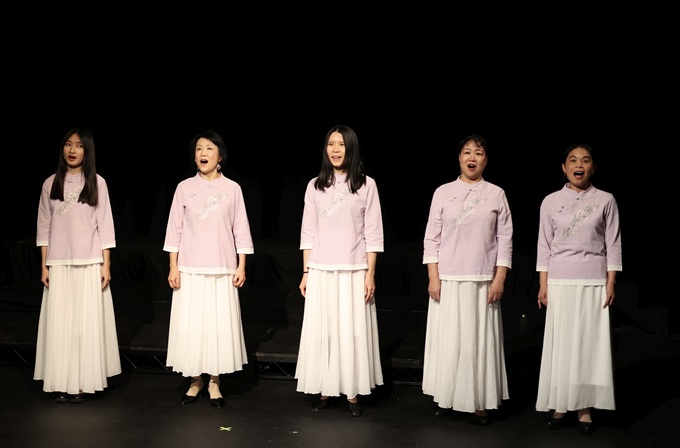 左起,叶梅琳、叶玲、梁蔚、彭薇、吴平桂演唱唐代诗人李白诗《春思》