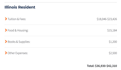 伊州大学香槟分校(UIUC)本州本科学生学杂费(2025-2026)